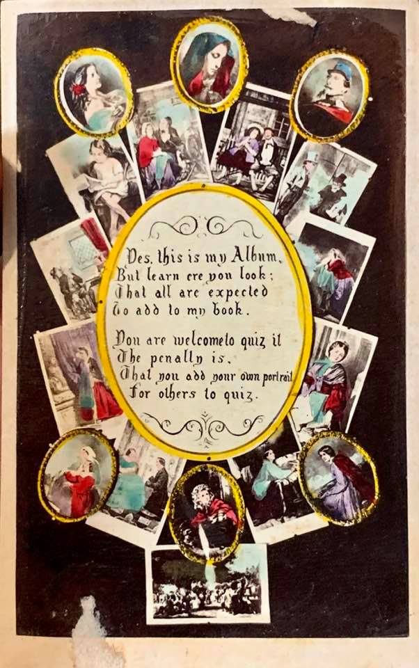 Carte de visite Private collection of Carlos Gabriel Vertanessian (Facebook, Michael Gregorio, 13 May 2020) A daguerreotype exists of the figure in the bottom rh oval. The top two ovals left and right are Eugènie de Montijo and Napoleon III. Oh yes, you've got the Virgin Mary in the centre. The others are sentimental vignettes.