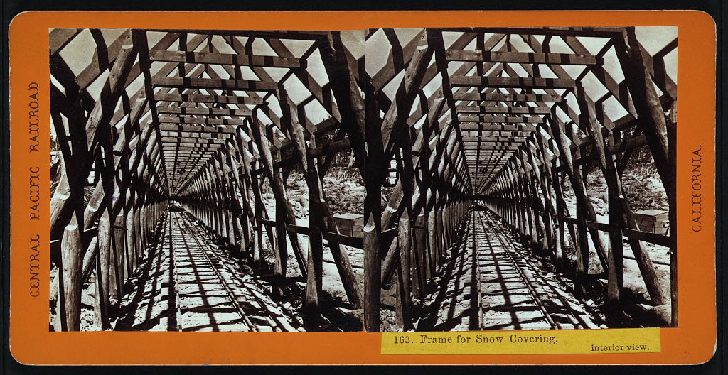 Alfred Hart 1865-1869 Frame for snow covering, interior view [Central Pacific Railroad, California. Scenes in the Sierra Nevada Mountains. No. 163]