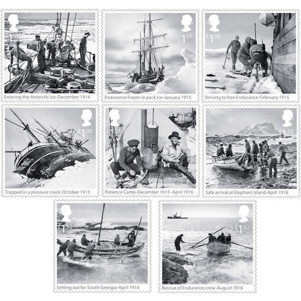 Created from original glass photographic plates held by the Scott Polar Research Institute and the Royal Geographical Society, the Mint Stamps feature eight scenes captured by pioneering photographer Frank Hurley.