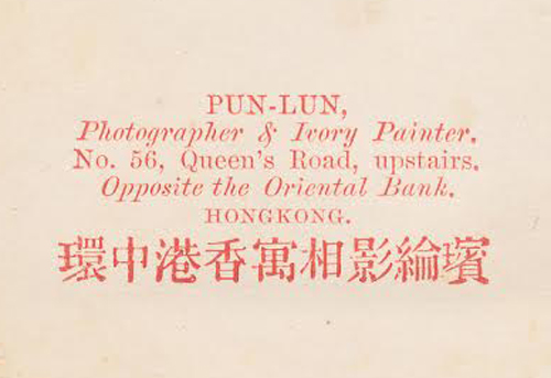 Backmark for Pun Lun (No. 56, Queen's Road, upstairs, HongKong)