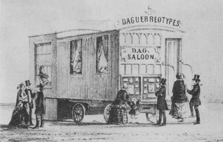 Kuchel and Dressel (lithographers) n.d. Photographic wagon "Daguerreotypes - Dag. Saloon"
