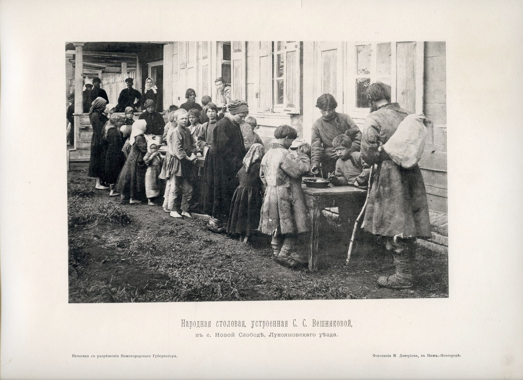 (Sergey Maximishin, 30 October 2020) The Album was shot by photographer Maxim Dmitriev on behalf of the Nizhny Novgorod charity Committee and the provincial food Commission. It was printed in 1893 in the phototypie technique in the photographer's workshop. From a huge number of photos, about 50 were selected.