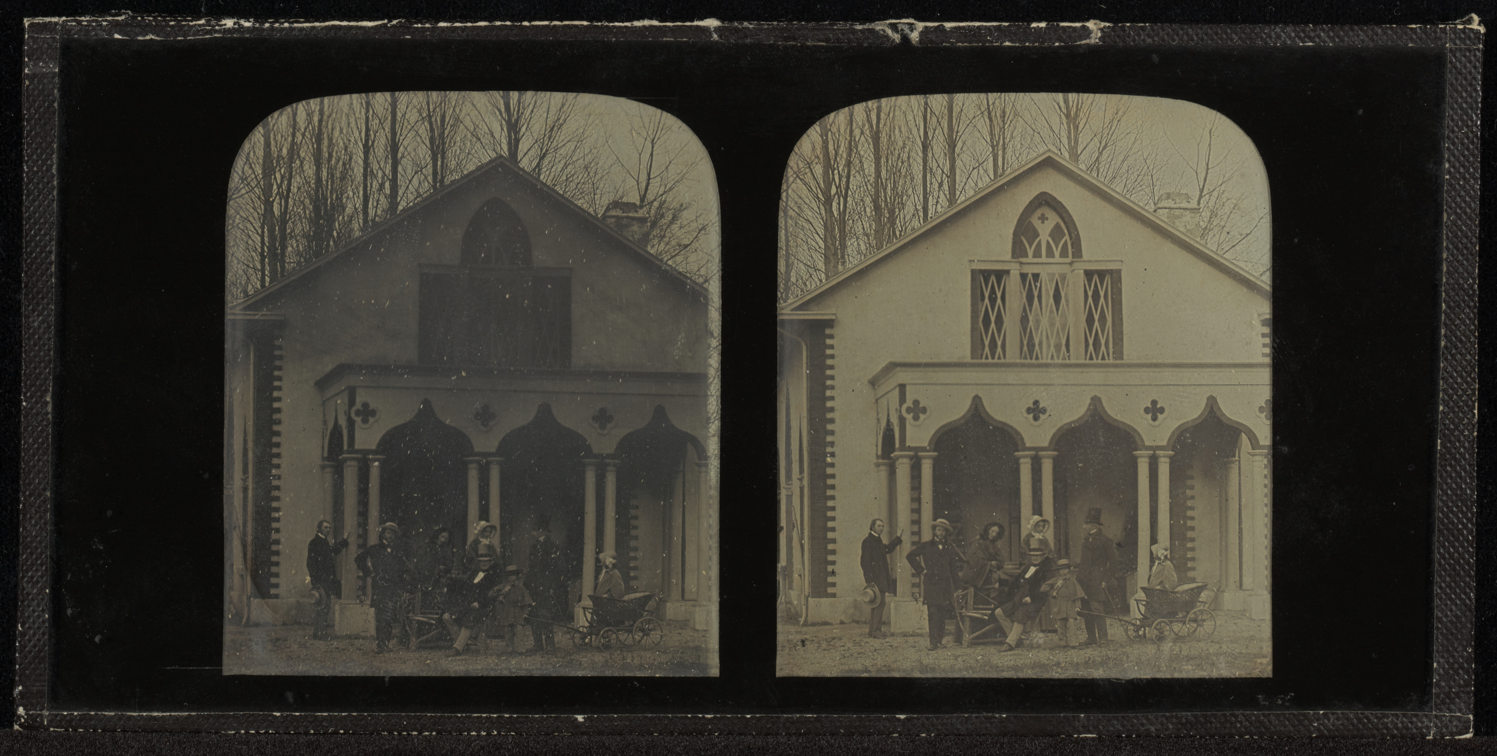 Inscription: Inscribed on backing, on white strip of paper at upper right, in black ink: "dependance du Grand fleur Eau le X b 1852"; on regular backing, at right center, in black ink: "La famille Bagny / le petite dependance du / Grand fleur d'une / Mr. Delbras So[illeg] & Sophie / Mr Eynard".