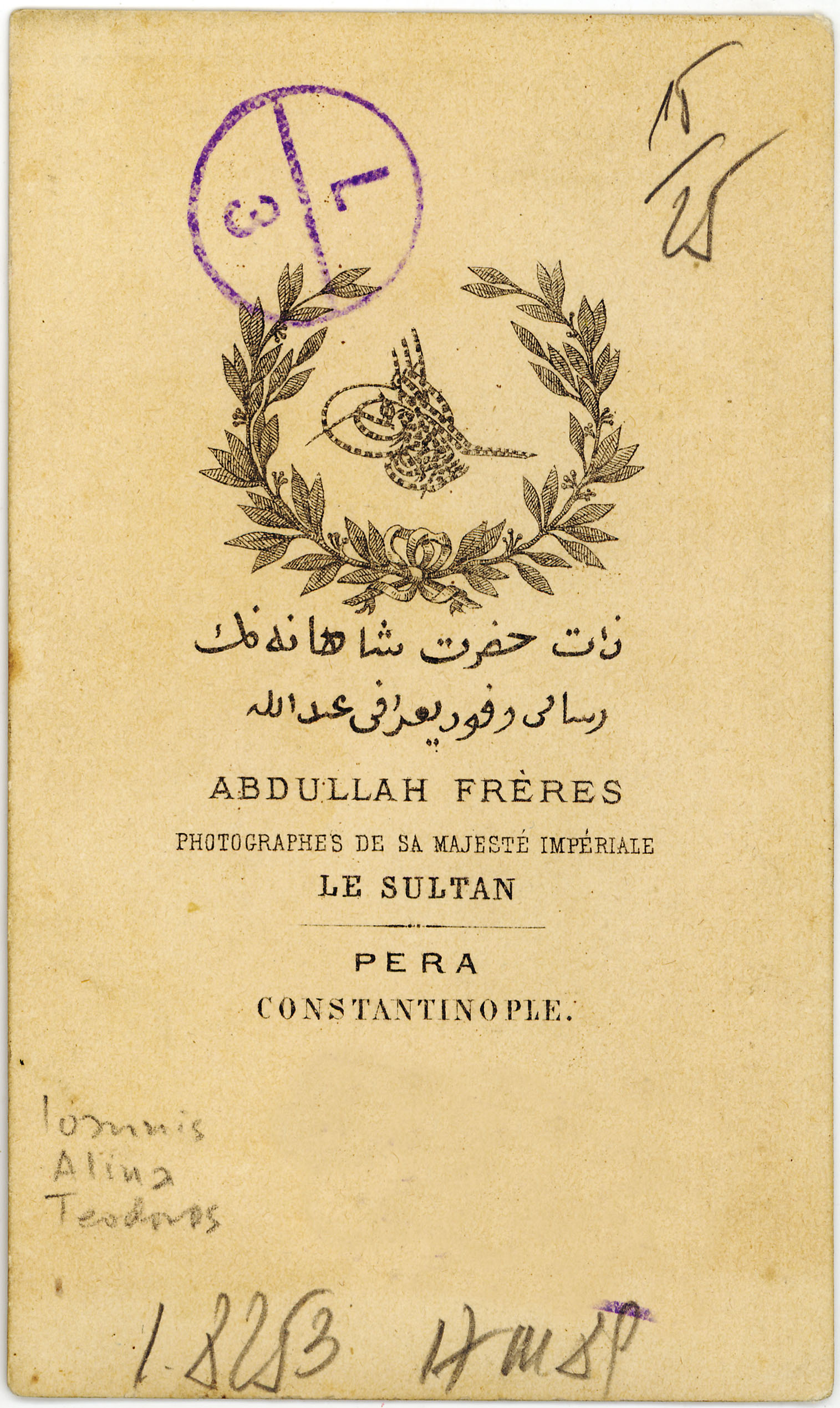 Backmark for "Abdullah frères, Pera, Constantinople"