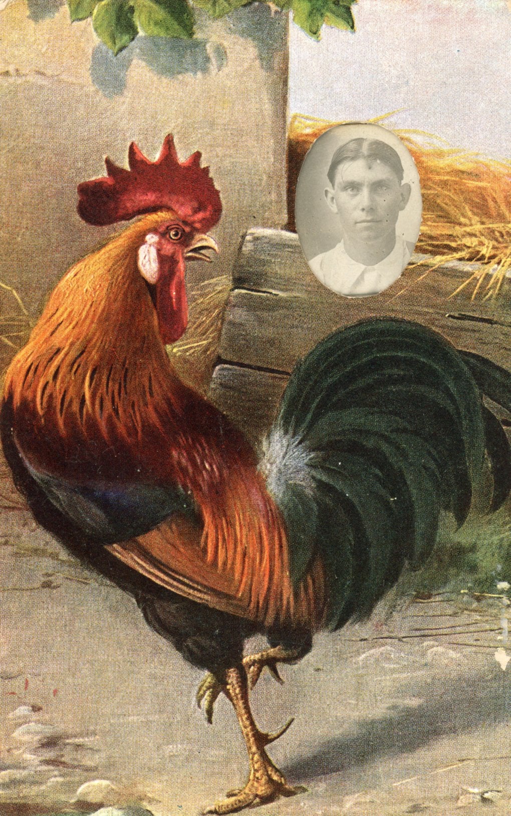 A portrait of a young man within a phot insert postcard