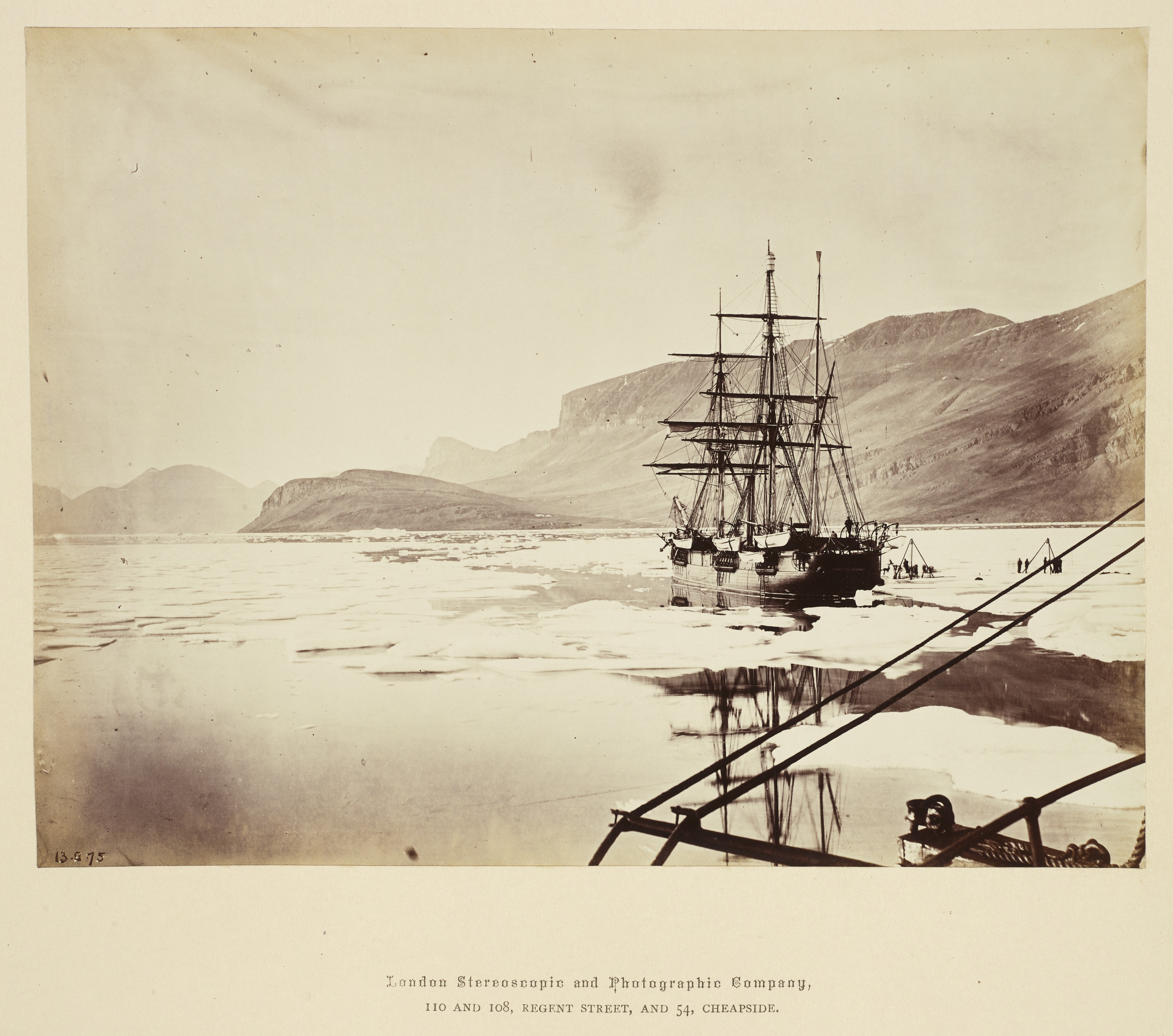 (Alan Griffiths, 27 January 2026) The photographer is not given on the Det Kongelige Bibliotek (The Royal Library) website but was, based on the The Royal Collection (UK), Thomas Mitchell. He was the photographer for the British Arctic Expedition, commanded by Captain George Nares (1875-1876). He trained at the Army School of Photography in Chatham and was on the "Discovery". The photographs were shown at the Photographic Society of Great Britain exhibition in 1877. The other photographer on this expedition was George White on "Alert".