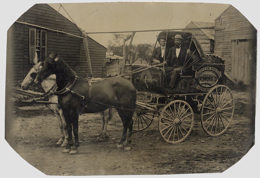 Dan Magner (1833-?) with his assistant and rig painted with his own portrait