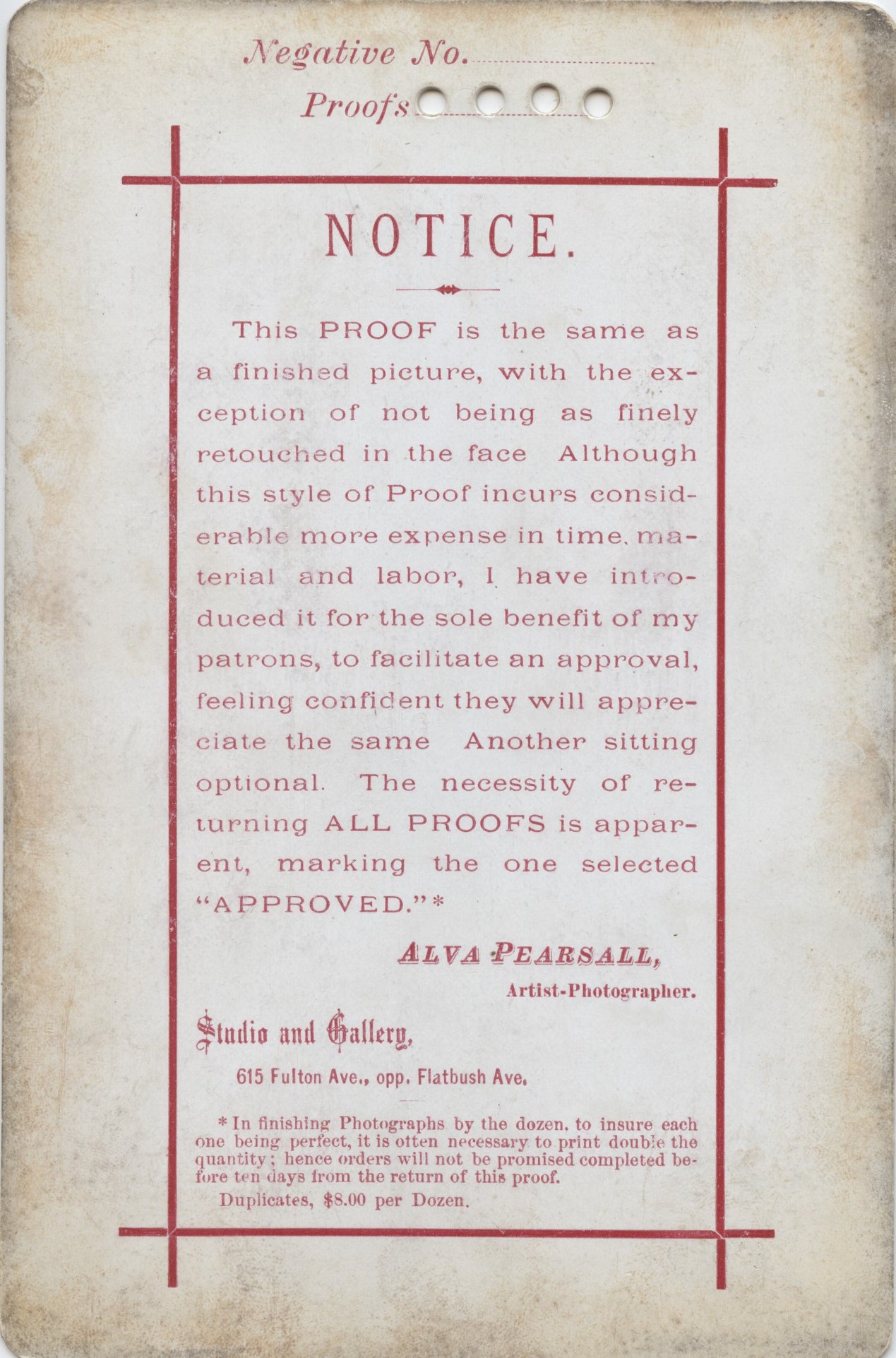 NOTICE - This PROOF is the same as a finished picture, with the exception of not being as finely retouched in the face.