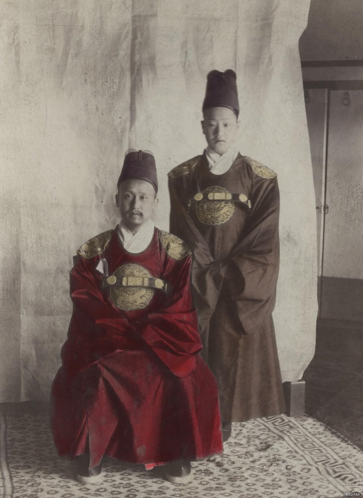 The last king of the dynasty, Lee Gojong, with Crown Prince Jeongjong in the royal chambers