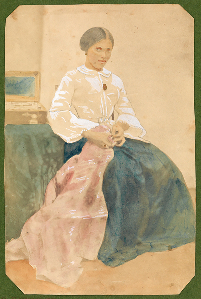 Tradeswomen are depicted with a teapot on a table, a comb, a basket laden with bottles or wares carefully balanced on their heads; maids hold embroidered cloth and a wet nurse is shown with an infant. A native lady-in-waiting (and a young child) attend to a gorgeously dressed aristocrat, who wears a long veil. The hand-colored prints reinforce the sense of individual style associated with these remarkable figures; two of the indigenous women (one of whom wears a cross), simply pose in the studio sans tradewomen's objects.