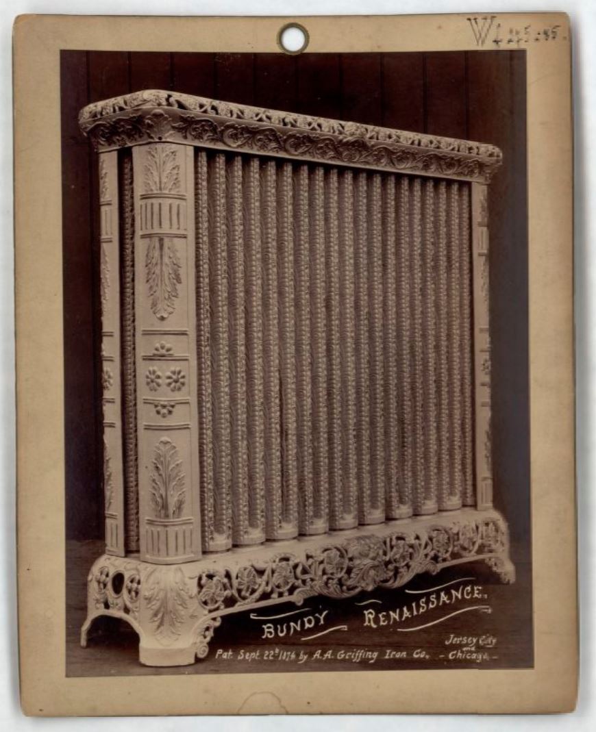 Unidentified phtographer n.d. Bundy Renaissance, Pat[ented] Sept[ember] 22d 1874 by A.A. Griffing Iron Co., Jersey City and Chicago / [publicité pour radiateur]