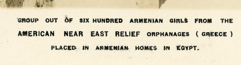 Group out of six hundred Armenian Girls from the American Near East Relief Orphanages (Greece) placed in Armenian homes in Egypt.