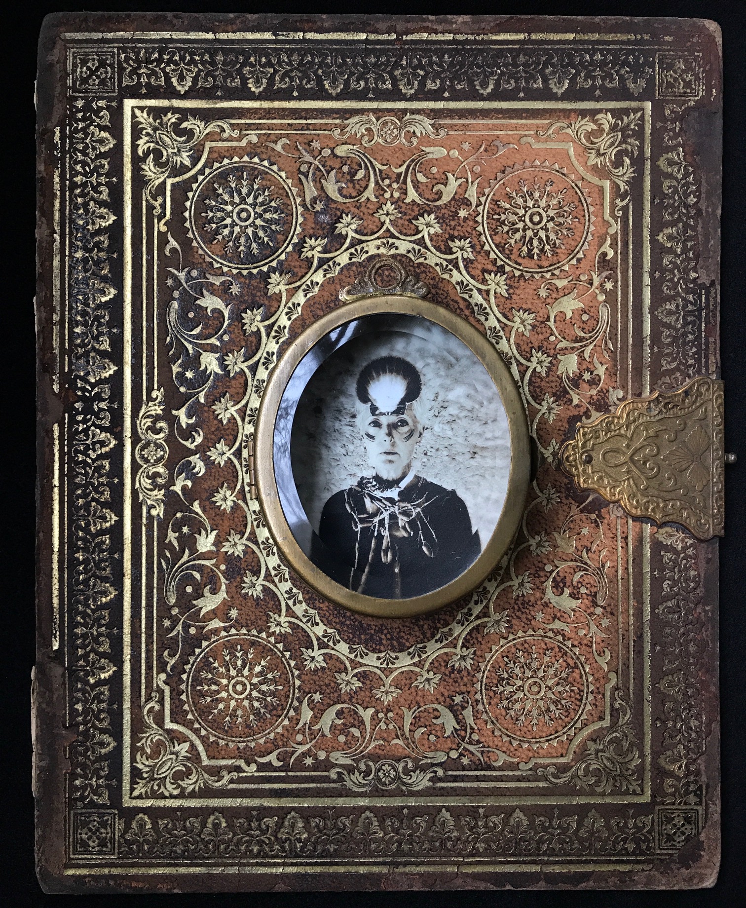 Vintage photograph album cover, locket type frame, digital self portrait