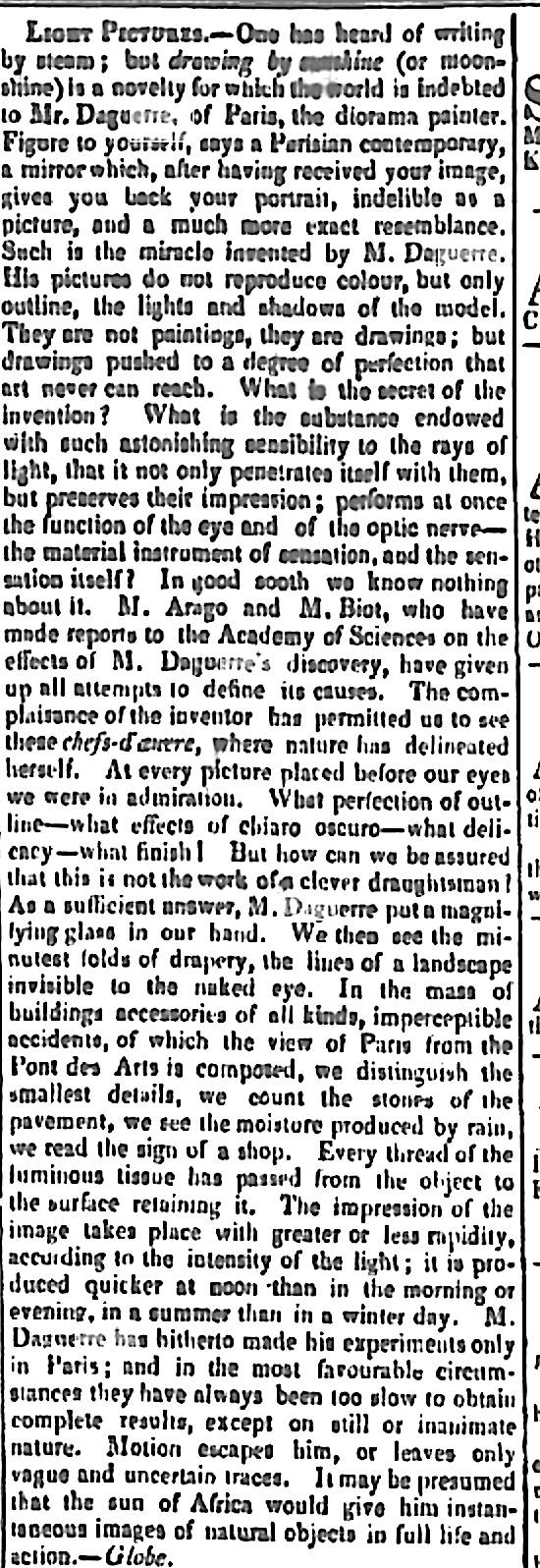 1839, 1 June Announcement of "Light Pictures" in the Australian newspaperThe Colonist (Sydney, NSW), 1 June 1839