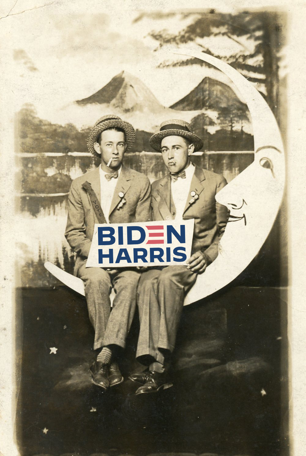 "Biden Harris" US Presidential Election, with a men in the moon prop