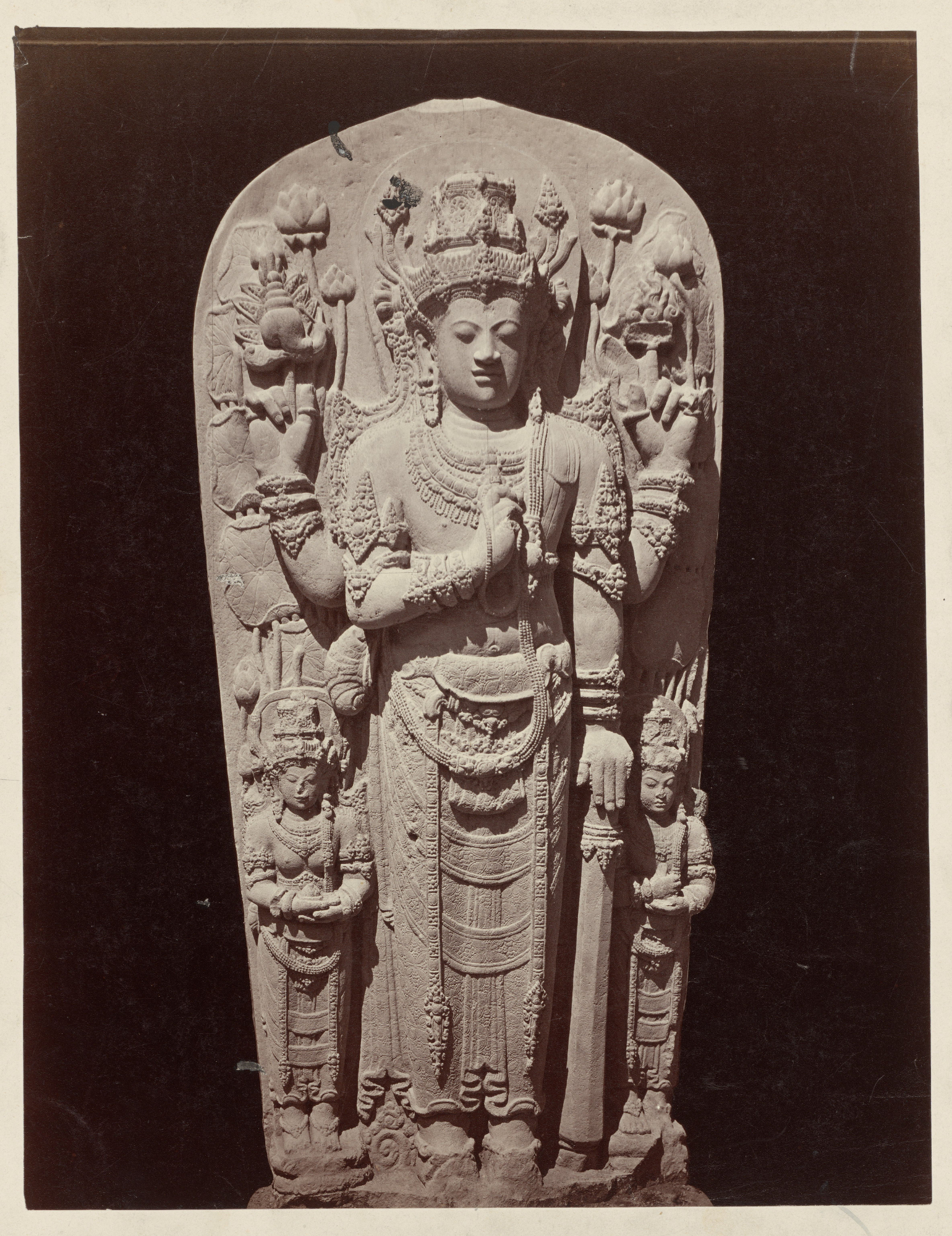 Four-armed deification stele (King Kritarajasa?) from Sumberjati showing features of both Vishnu and Shiva. Blitar, Blitar district, East Java province, 14th century, Indonesia