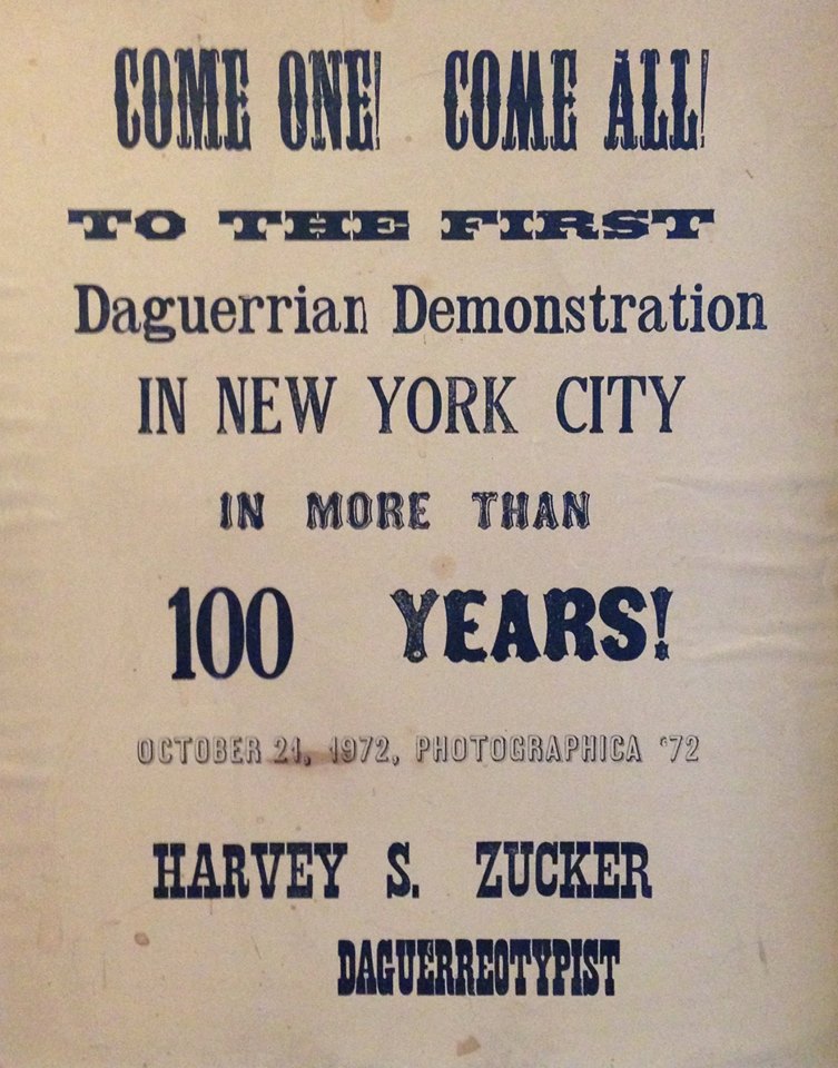 Come One! Come All! To the first Daguerrian Demonstration in New York City in more that 100 Years! October 21, 1971, Photographica '72 - Harver S. Zucker Daguerreotypist