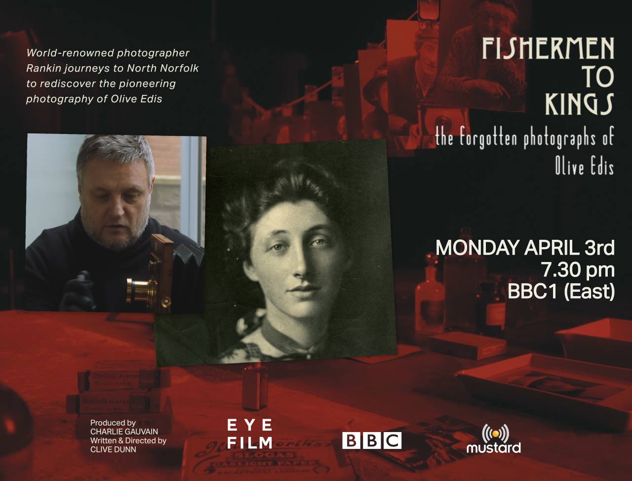 Announcement for the broadcast "Fishermen to Kings: the forgotten photographs of Olive Edis" (BBC1 East, UK)