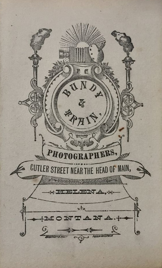 Backmark for "Bundy & Train, Photographers, Cutler Street near the Head of Main, Helena, Montana"