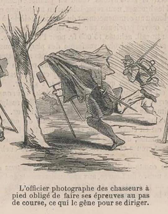 The officer photographer of the light infantry, forced to do his work whilst running, which gives him issues with directions. L'Illustration, Journal Universel, 20 February 1861 LL/104446