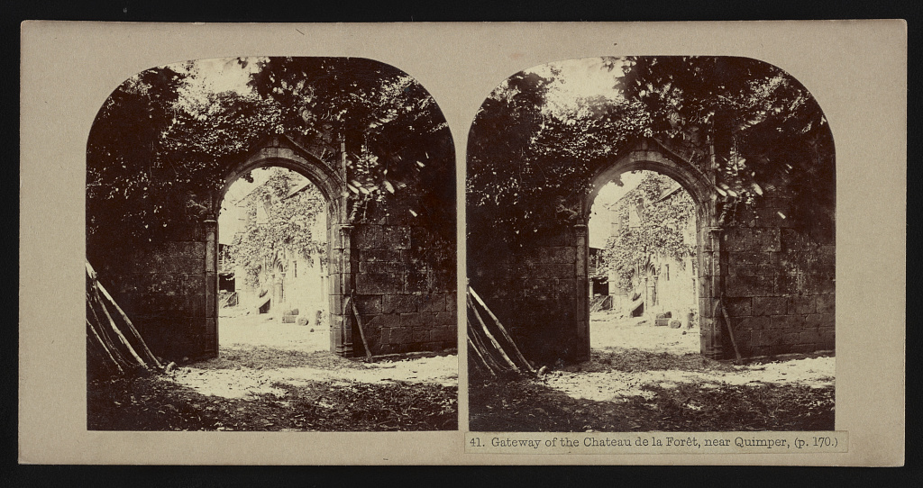 Henry Taylor 1858, 28 August (taken) 1859 (published) Gateway of the Chateau de la ForĂȘt, near Quimper, (p. 170.) [Narrative of a Walking Tour in Brittany]
