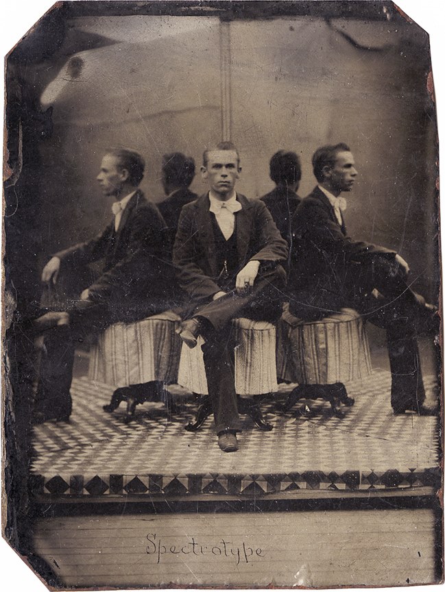 Multigraph portrait of a man facing the camera ("Spectrotype")
