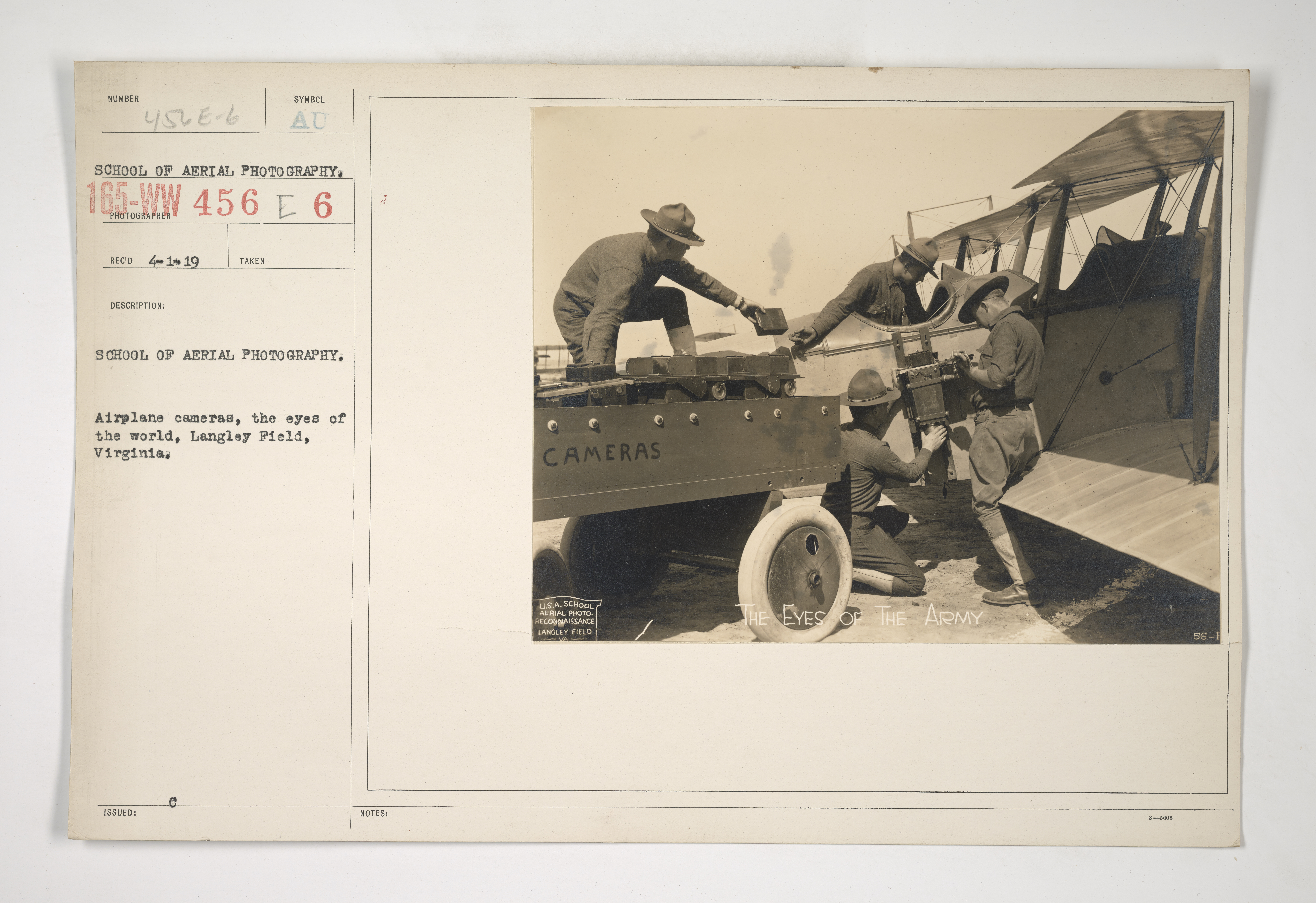School of Aerial Photography. - Airplane cameras, the eyes of the world, Langley Field, Virginia.