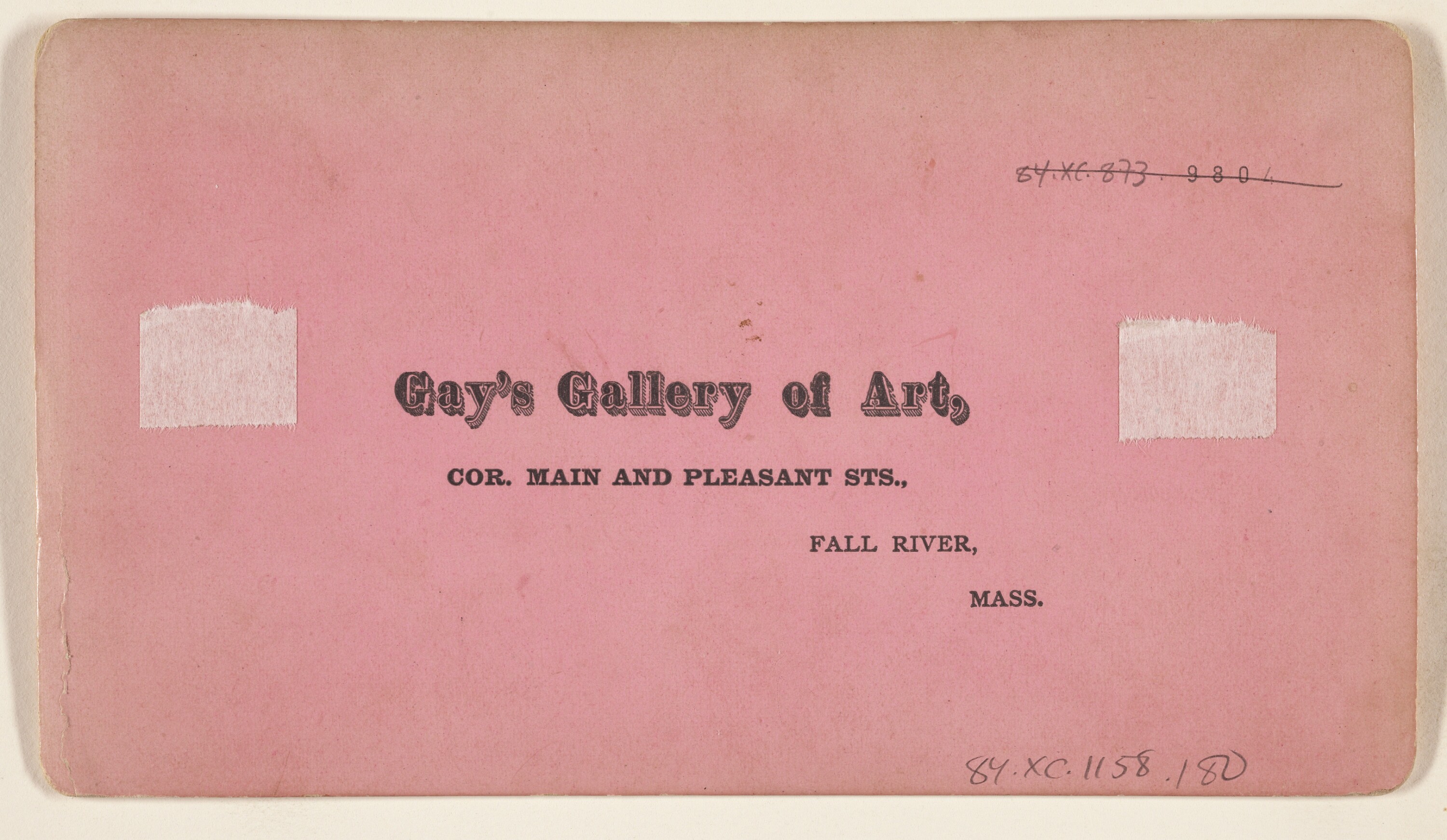 Backmark for "Gay's Gallery of Art, Cor. Main and Pleasant Sts., Fall River, MASS."
