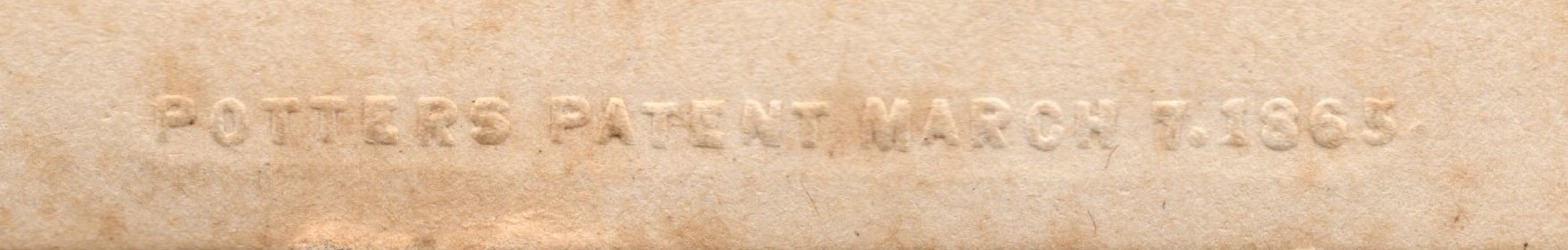 Embossed mark for "Potters Patent March 7 1865." on a tintype card mount