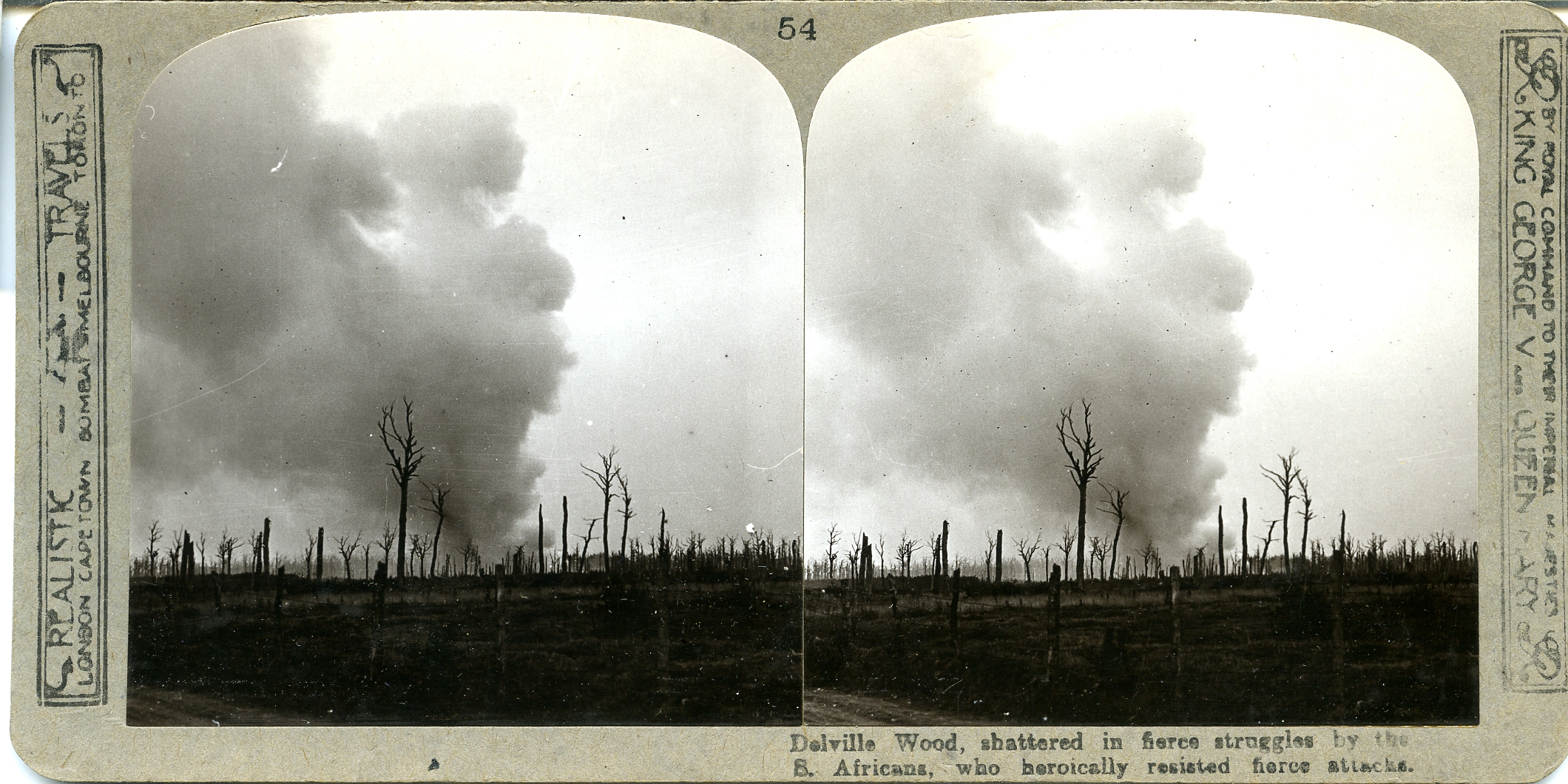 Delville Wood, shattered in fierce struggles by the S. Africans, who heroically resisted fierce attacks.