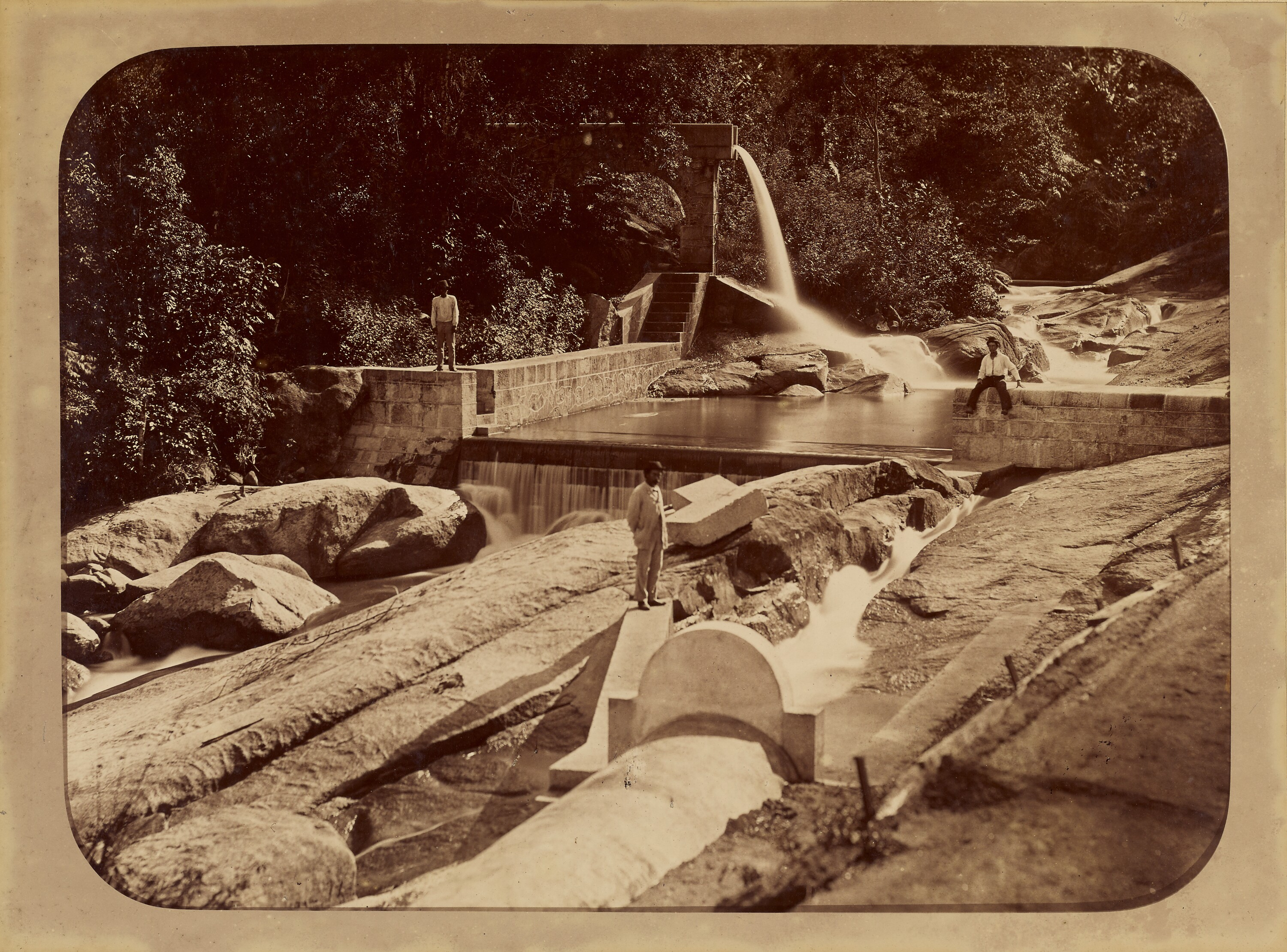 Works of Rio de Janeiro Water Supply, Rio de St. Antonio dam, and piped water from the Nery Waterfall.