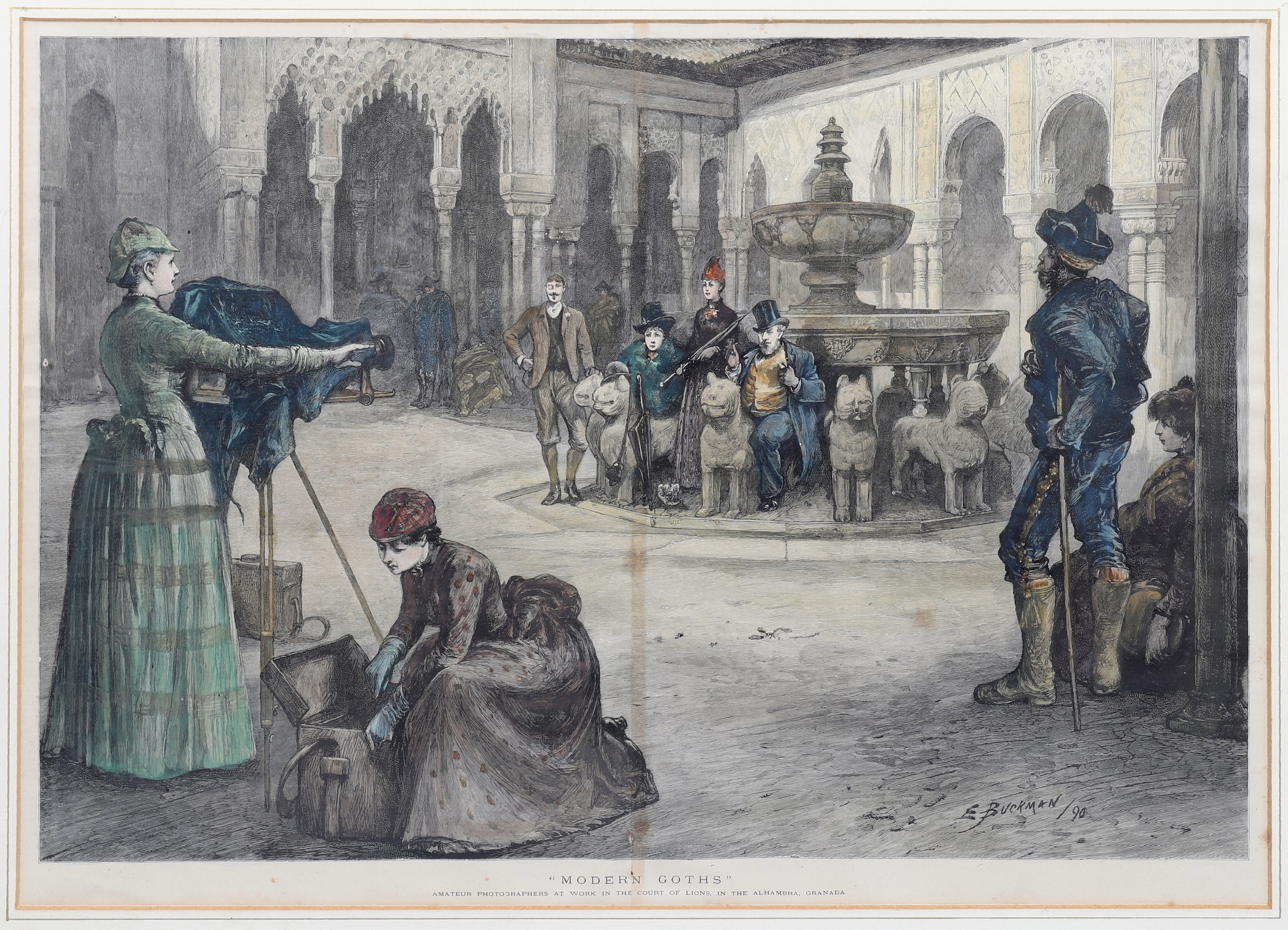 "Modern Goths" Amateur photographers at work in the Court of the Lions in the Alhambra, Granada