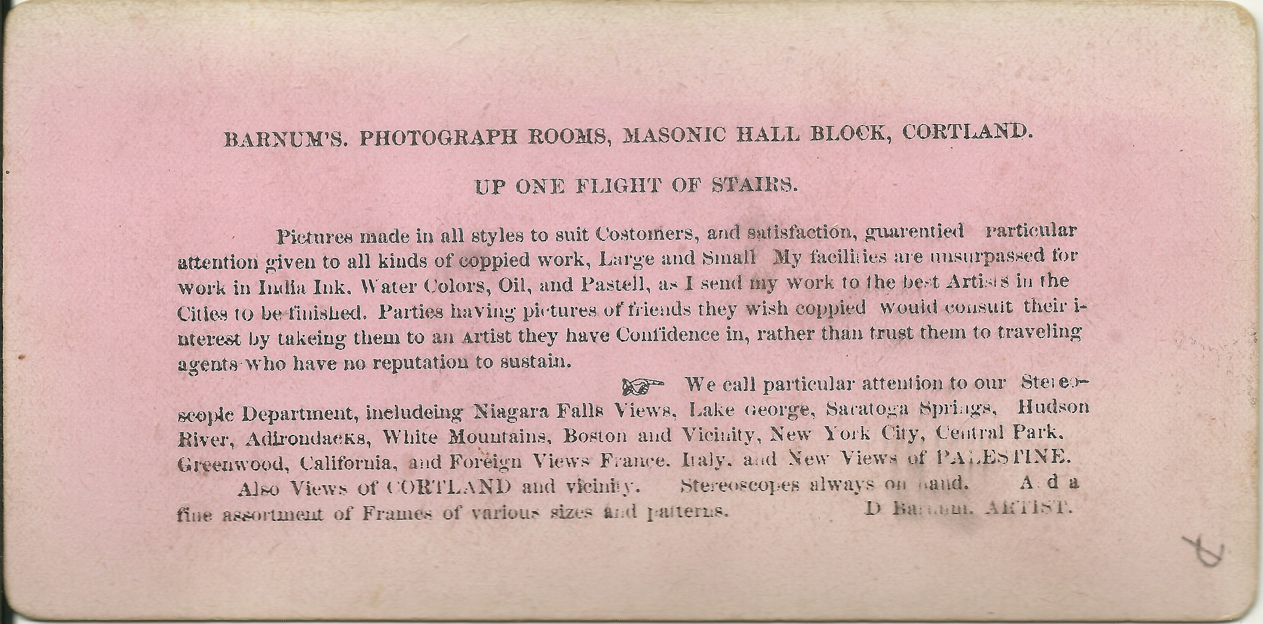 Barnum's Photograph Rooms (Masonic Block, Cortland)