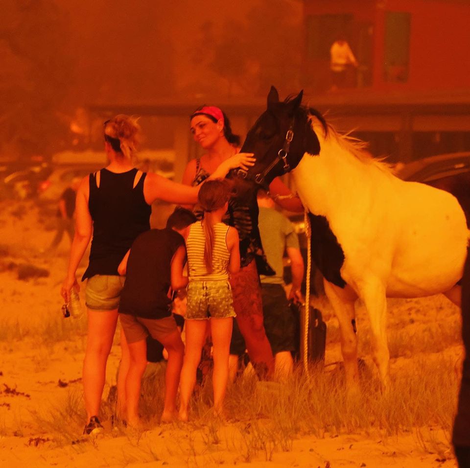 Malua Bay, NSW, Australia with people avoiding the vast bushfires taking place nearby