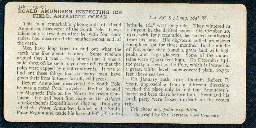 Roald Amundsen, Discoverer of the South Pole, Dec. 16. 1911. Inspecting Ice Field near Glacier, Antarctic Ocean.