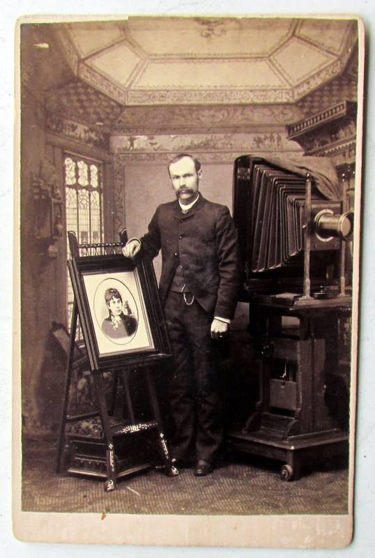 Portrait of a photographer with his camera and a framed portrait