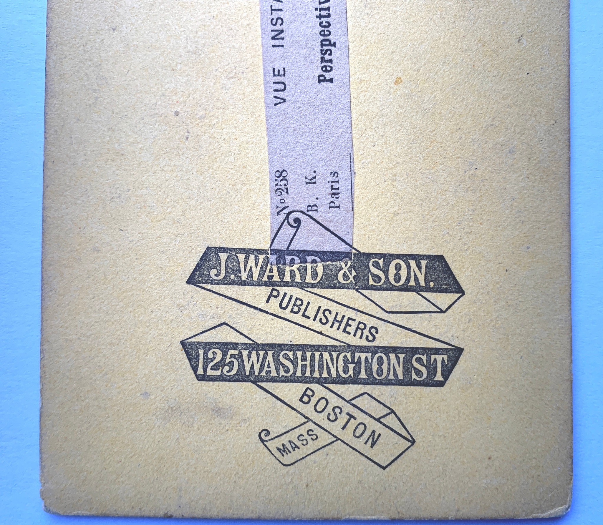 Over-printing by "J.Ward & Son, Publishers, 125 Washington St Boston Mass" on a French stereoview
