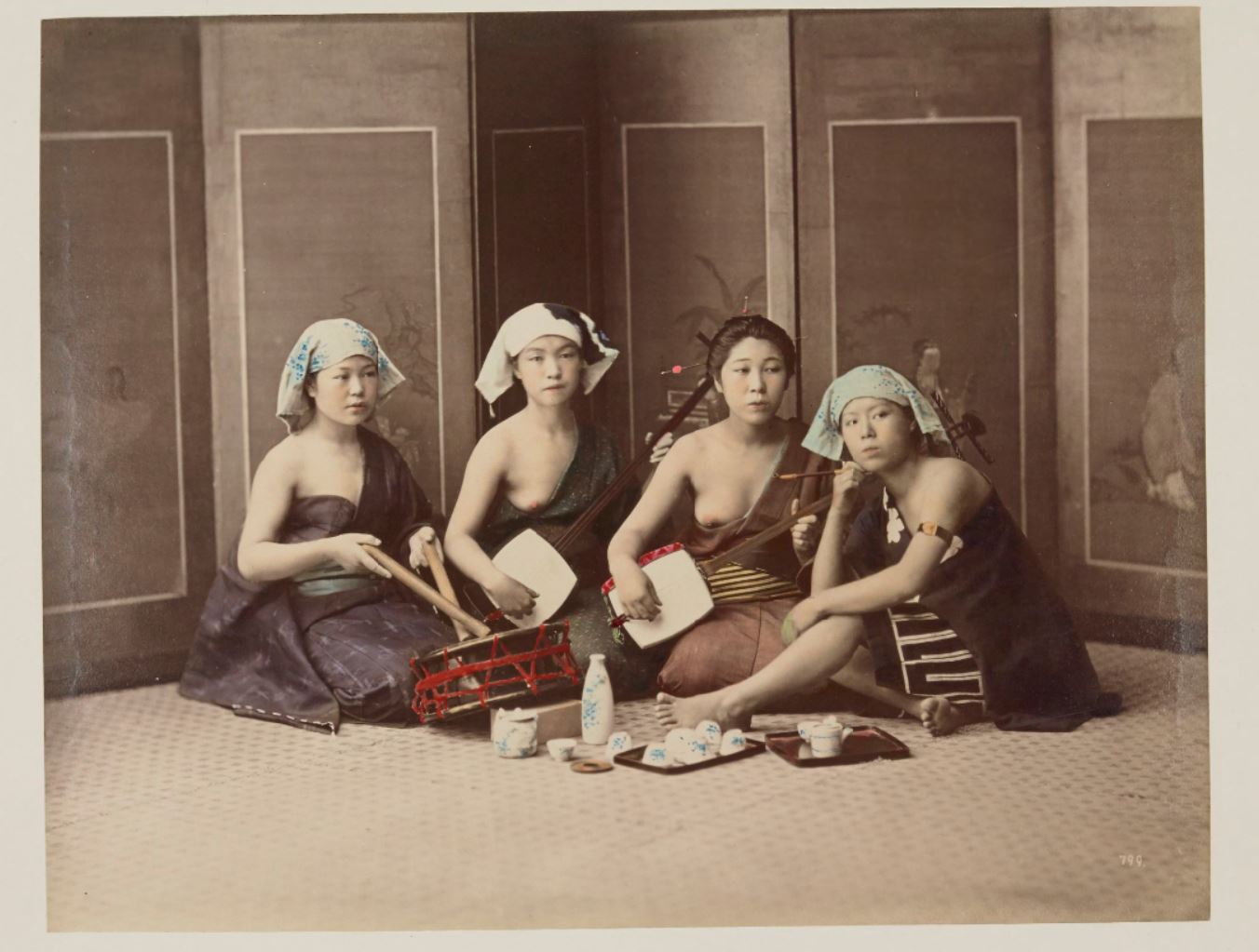 [Singing girls drinking sake] [Quatre jeunes filles jouant de la musique et buvant du saké]