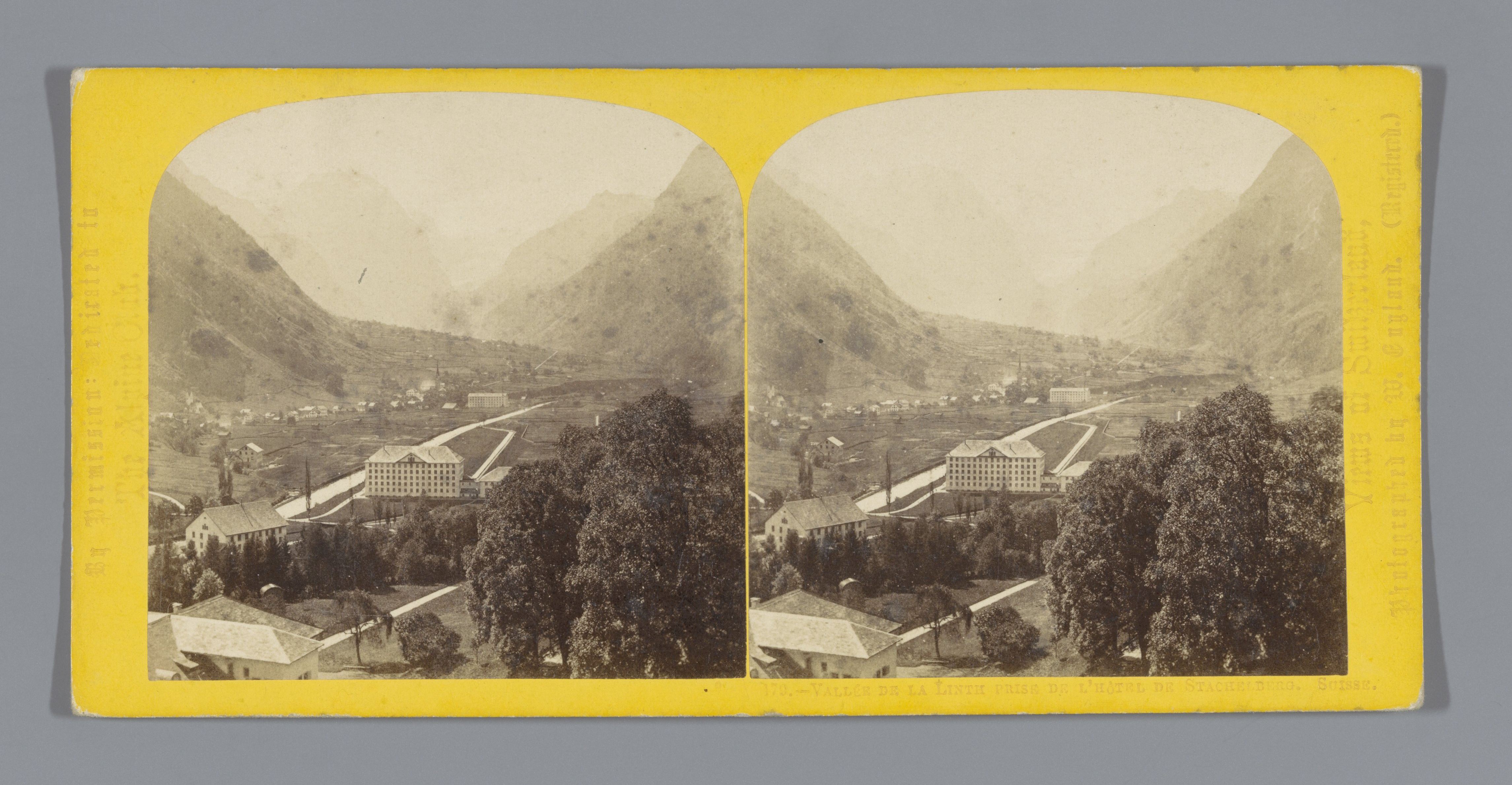 Gezicht op de Linthvallei / Vallée de la Linth prise de l'hôtel de Stachelberg. Suisse. (title on object)