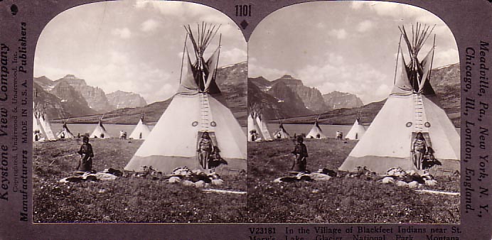 Keystone View Company n.d. V23181 In the village of Blackfeet Indians near St. Mary's Lake, Glacier National Park, Montana.