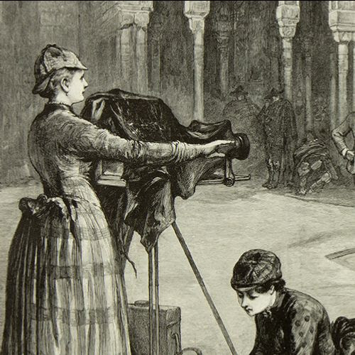 "Modern Goths" Amateur photographers at work in the Court of the Lions in the Alhambra, Granada