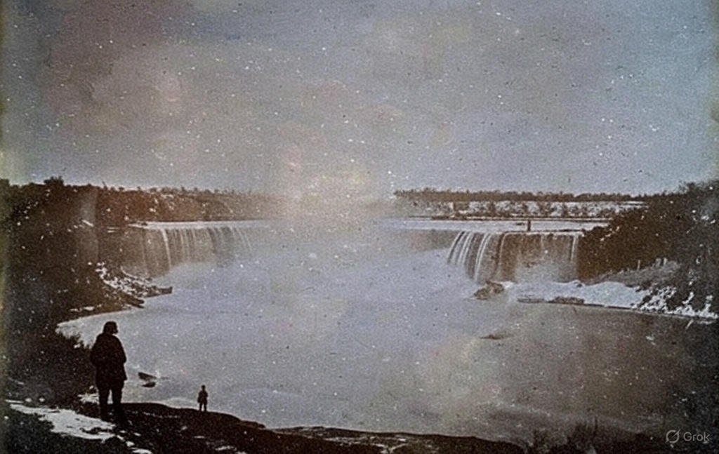 Hugh Lee Pattinson was a British industrialist and metallurgist who visited Canada on a business trip soon after the Daguerreotype method was announced in 1839. This photograph was taken at Niagara Falls and is considered to be amongst the earliest photographs, if not the earliest, taken in Canada. Eight Daguerreotypes by Pattinson are retained by Newcastle University Library.