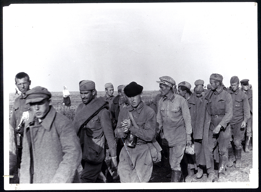 These are mostly 4 ¥" x 6 7/8" plus a few smaller. Various notations and labels, including "Nur fur den Dienstgebrauch!" [For official use only] and "Noch nicht zensiert" [not yet submitted for censorship.] Some with the stamp "Lw. Kriegsberichter-Zug" and the name of the photographer written in in pen or pencil. Some press slugs have been torn off the backs.These have been nicely arranged in a modern album, grouped according to various categories such as "Pilots and their planes," "Hospital visit with officials," "Soldiers with equipment"[includes tanks,] "Athletic meet and large gathering" [30 photographs, includes women's track meet], "Winter in Russia ," [lines of prisoners,] "Stuck in the mud" etc. These generally show the less violent aspects of the war, though a few smaller snapshots are more graphic. There are 146 photographs in all.