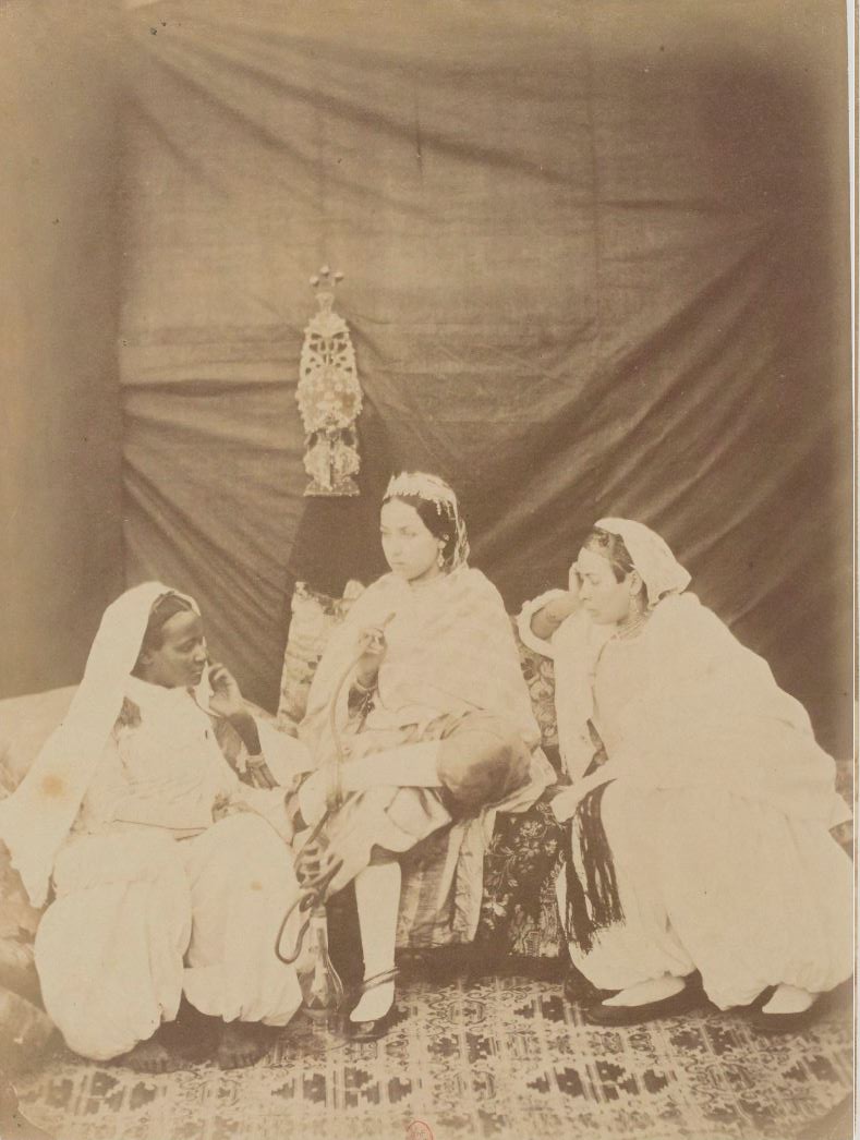 Mauresques et négresse d'Alger fumant le narguilé