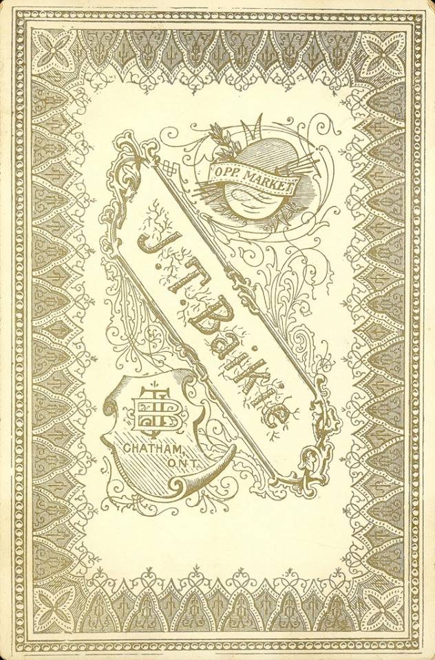 Backmark for "J.T. Baikie, Chatham, Ont."
