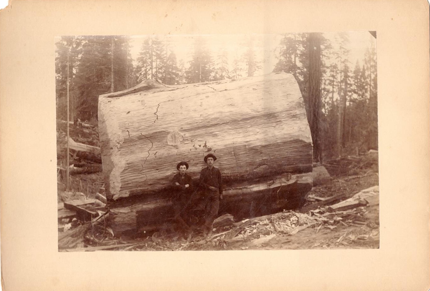 Two Men In Front Of A Portion of Cut Sequoia.