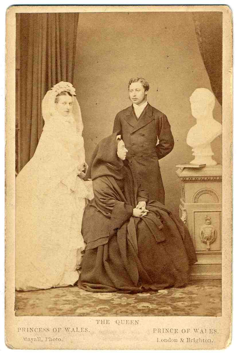Queen Victoria and the Prince and Princess of Wales (on their wedding day) with bust of Prince Albert