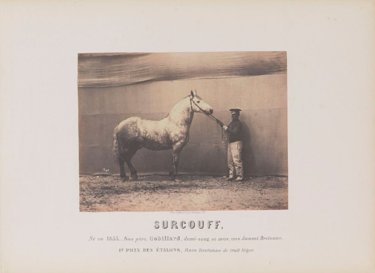 Surcouff // Né en 1855. Son père, Gobillard, demi-sang, sa mère, une jument bretonne, // 1er prix des étalons, race bretonne de trait léger