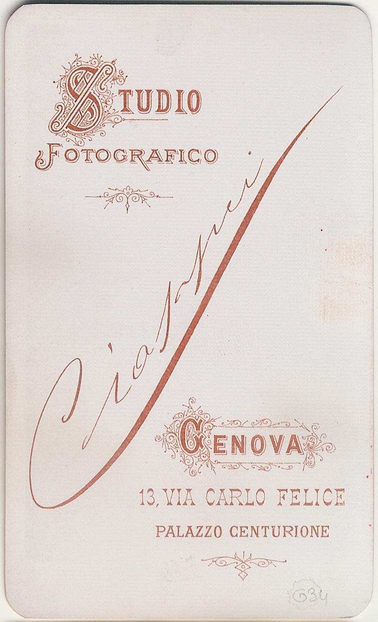 Backmark for "Studio Fotografico Ciappei, Genova, 13, Via Carlo Felice, Palazzo Centurione"