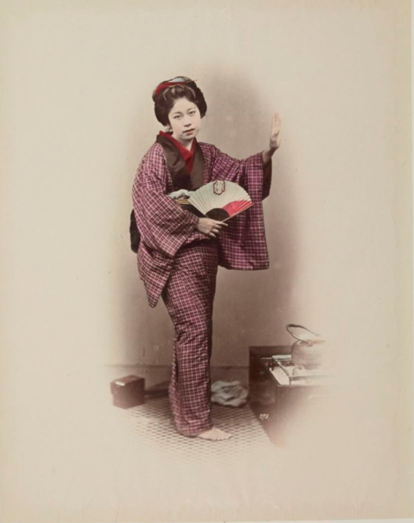 [Jeune femme debout à l'éventail]